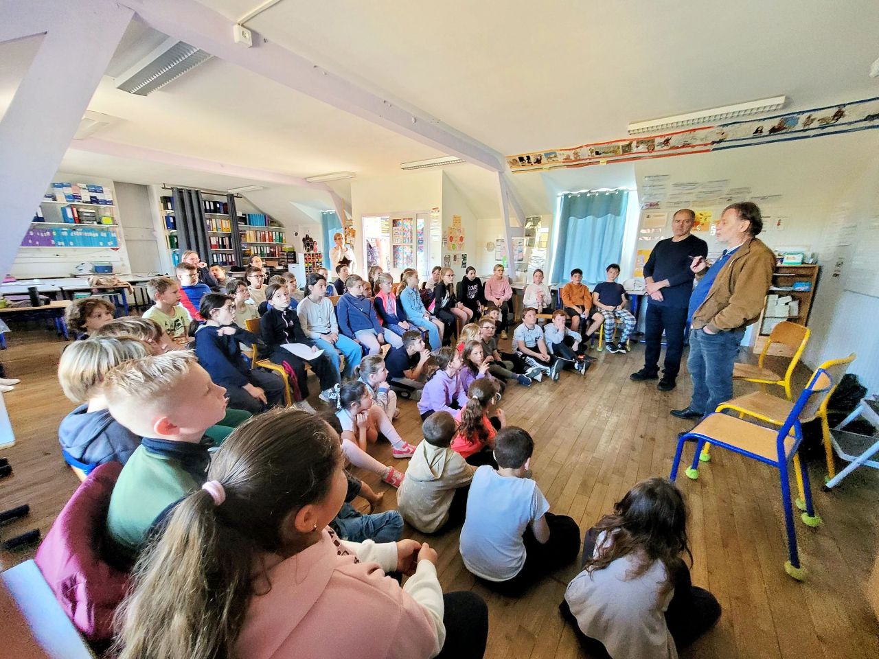 Aujourd'hui, les enfants du CP au CM2 rencontrent le Pr de Kerdanet de l'hôpital de sud de Rennes pour leur expliquer le diabète. L'association Roc Loisirs, cette année va soutenir l'association "Association des Jeunes Diabétiques", AJD, dont le professeur de Kerdanet est le président. Les élèves ont pu poser leurs questions et vivre un temps d'échange très intéressant.