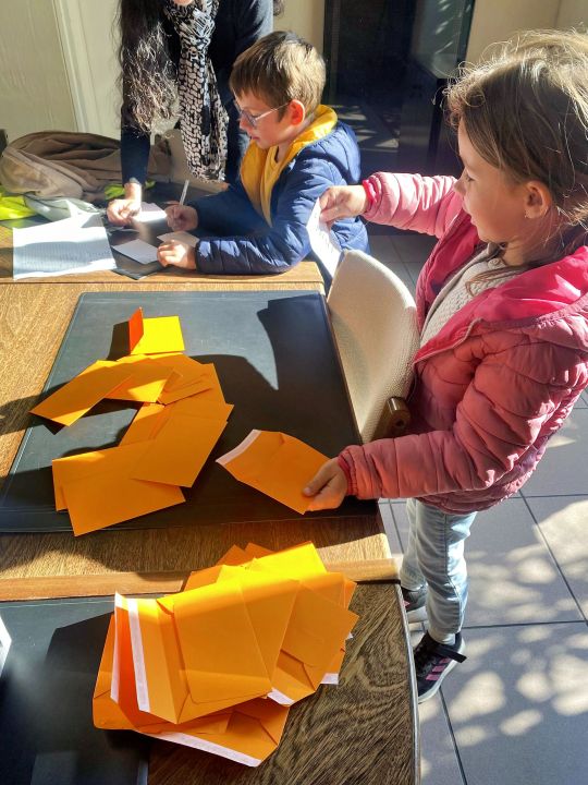 Ce matin, les CE2 CM1 ont préparé des ateliers pour les maternelles. Au programme : parcours vélo, parcours de motricité, transvaser, flotte ou coule, oeuvre d'art arbre de vie, jeu de l'oie, objets comptés, jeu de relais.